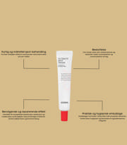Fjern den hvide tape på låget. Drej låget godt fast for at åbne tubespidsen. Klem en passende mængde ud, og påfør direkte på det berørte område som det sidste trin i din aftenrutine. Lad virke natten over.